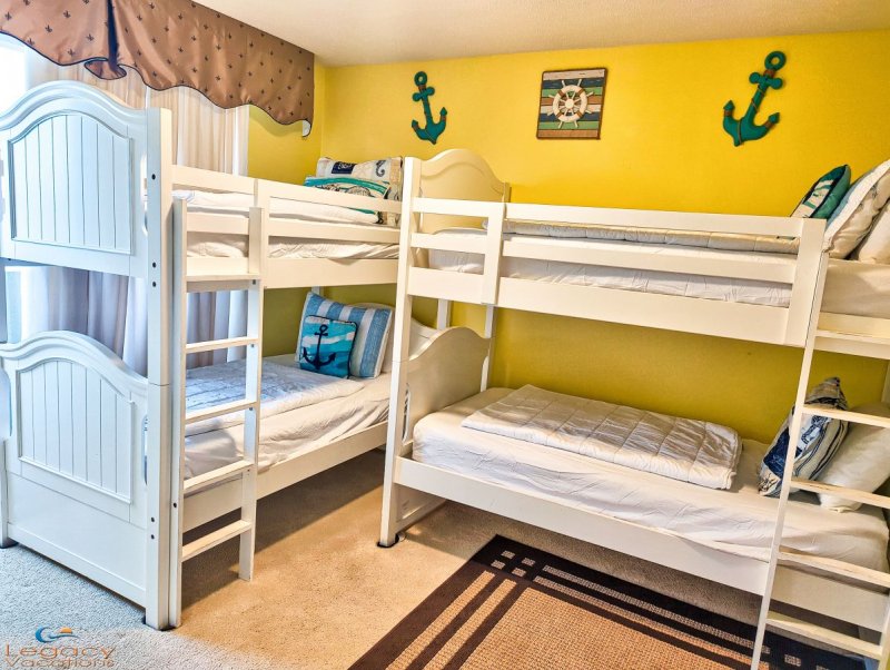 Room for Everyone – King bed in the master, queen bed in the second, and twin-over-twin bunks in the third, comfortably sleeping 8 guests.