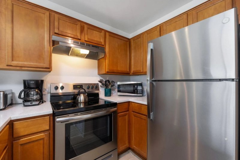 Inside, you’ll find a king bedroom suite with a powder room, plus an additional full size guest bathroom off the hallway for convenience. The updated kitchen features stainless steel appliances and everything you need to prepare meals. Relax in the living room with a sleeper sofas (condo sleeps up to 4), flat-screen TVs in both the living room and bedroom, and an in-unit washer and dryer.