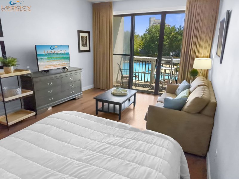Queen bed and queen sofa-sleeper included (sleeps a total of 4)